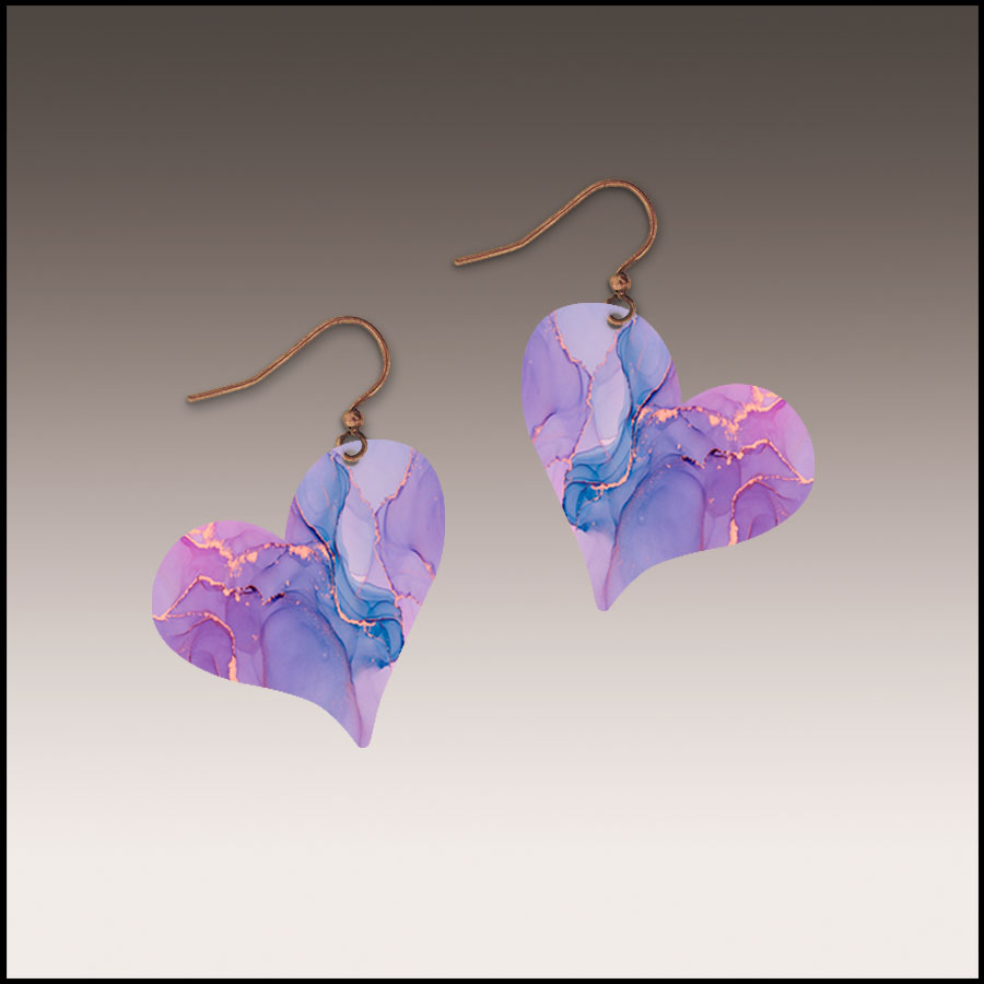 Our very stylish earrings are ultra-light weight & water resistant. Each earring is a handcrafted UV giclée printed both sides on stainless steel. We use hypoallergenic, antique copper ear wires. Sku: 51JE