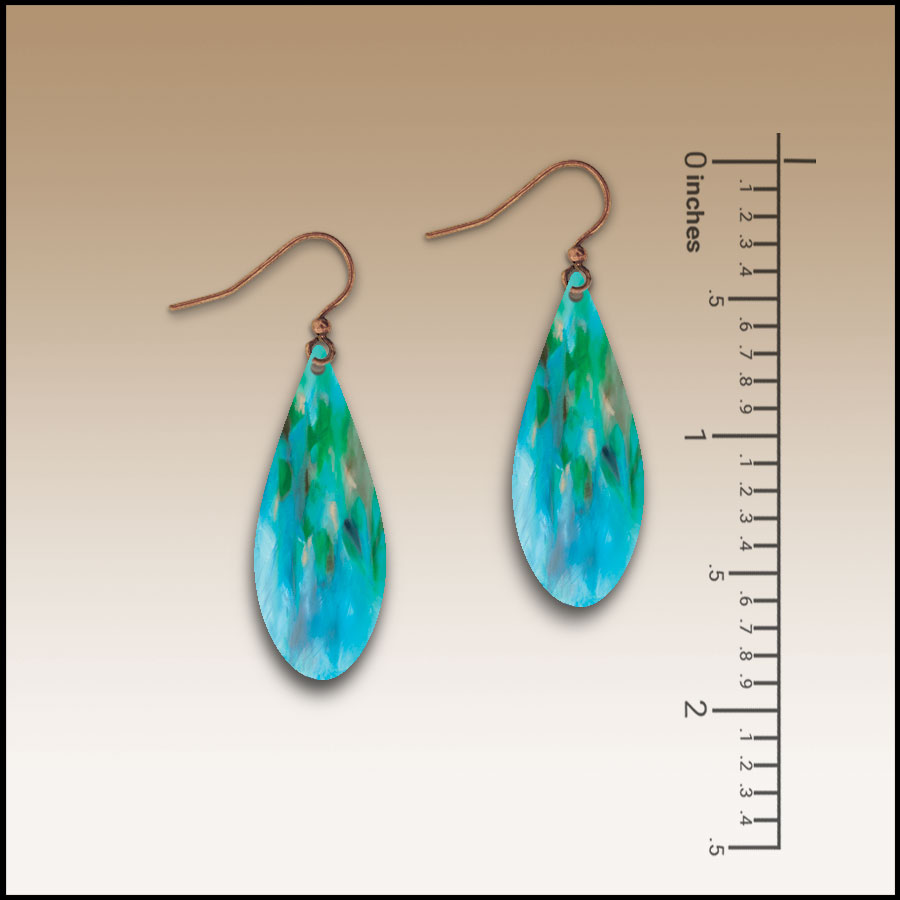 Our very stylish earrings are ultra-light weight & water resistant. Each earring is a handcrafted UV giclée printed both sides on stainless steel. We use hypoallergenic, antique copper ear wires. Sku: 2NDE