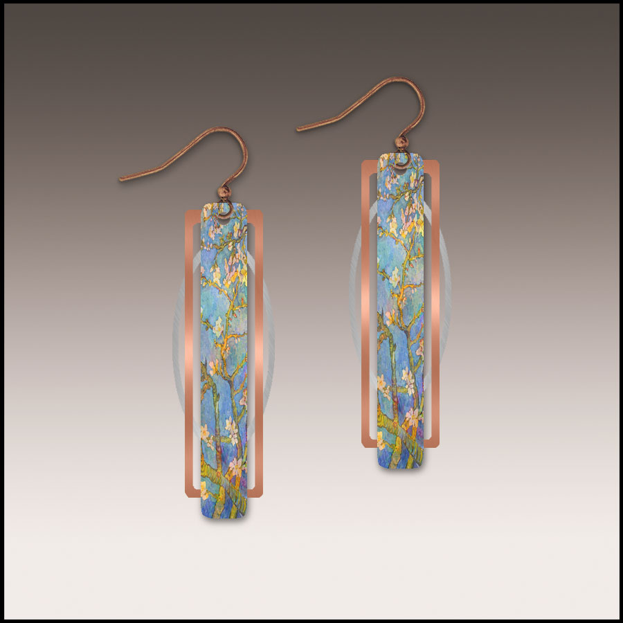Our very stylish earrings are ultra-light weight & water resistant. Each earring is a handcrafted UV giclée printed both sides on stainless steel. We use hypoallergenic, antique copper ear wires. Sku: 2NCS3