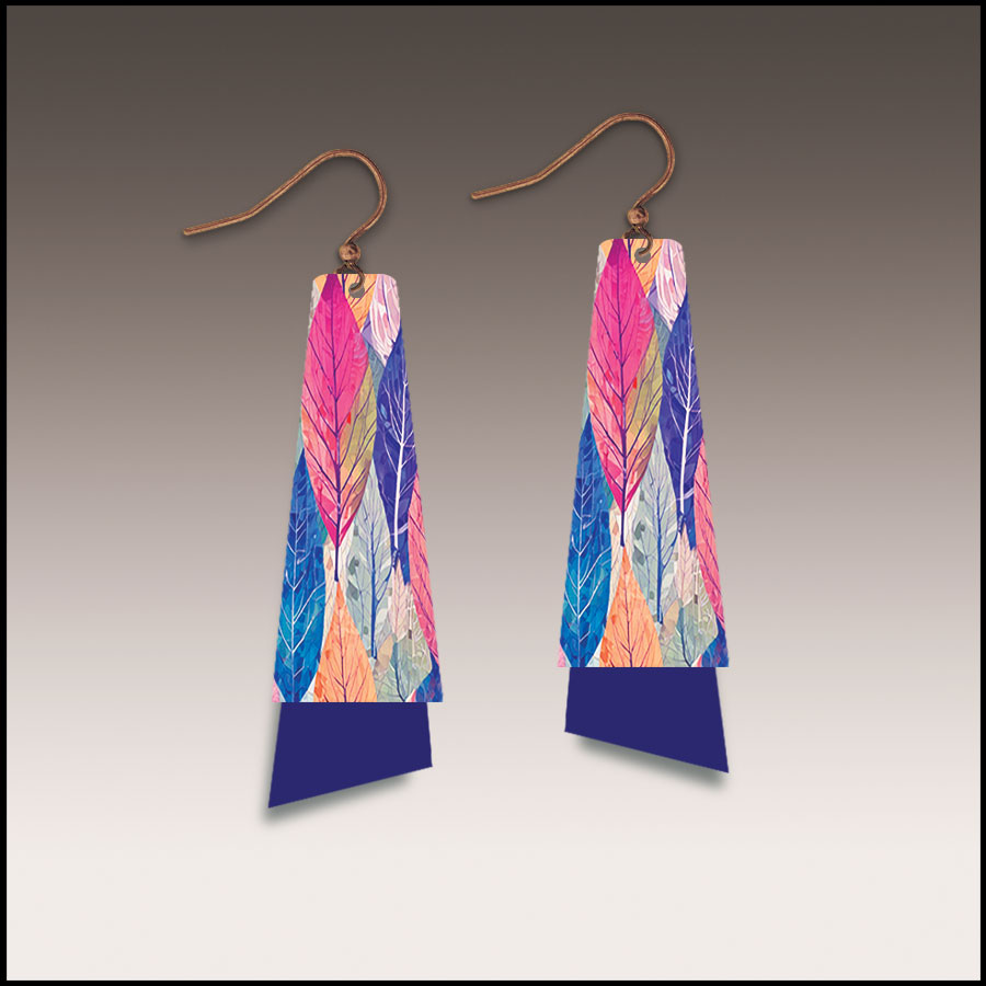 Our very stylish earrings are ultra-light weight & water resistant. Each earring is a handcrafted UV laminated giclée print. We use hypoallergenic, antique copper ear wires. Each layer swings independently. Dimensions: ½” Wide x 2 ⅛” Drop Length. Sku: 68TE
