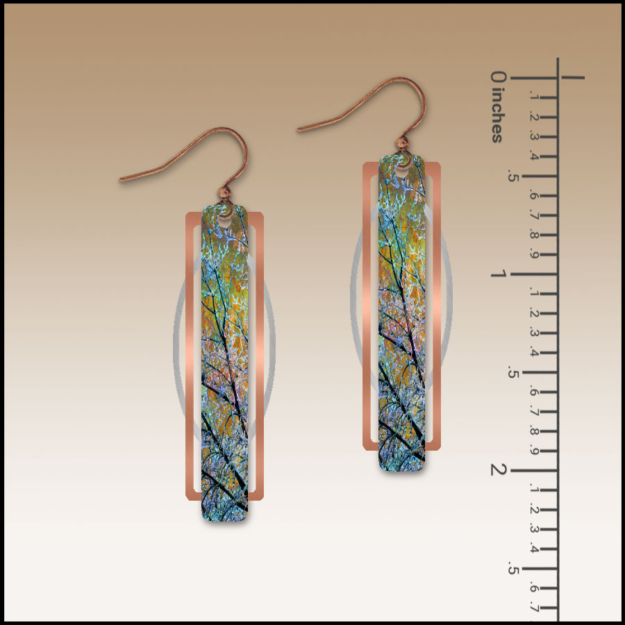 Our very stylish earrings are ultra-light weight & water resistant. Each earring is a handcrafted UV giclée printed both sides on stainless steel. We use hypoallergenic, antique copper ear wires. Sku: ME22CS3