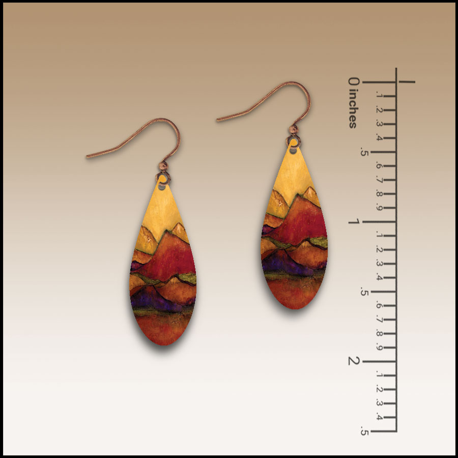 Our very stylish earrings are ultra-light weight & water resistant. Each earring is a handcrafted UV giclée printed both sides on stainless steel. We use hypoallergenic, antique copper ear wires. Sku: SH17DE