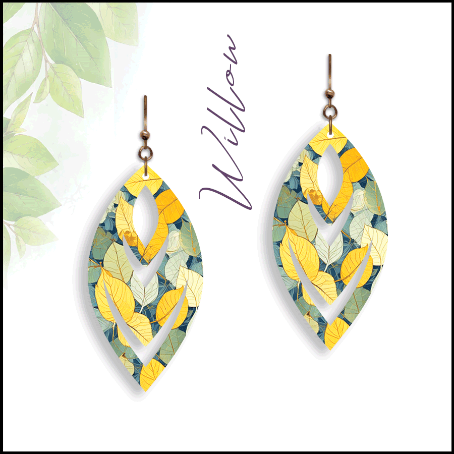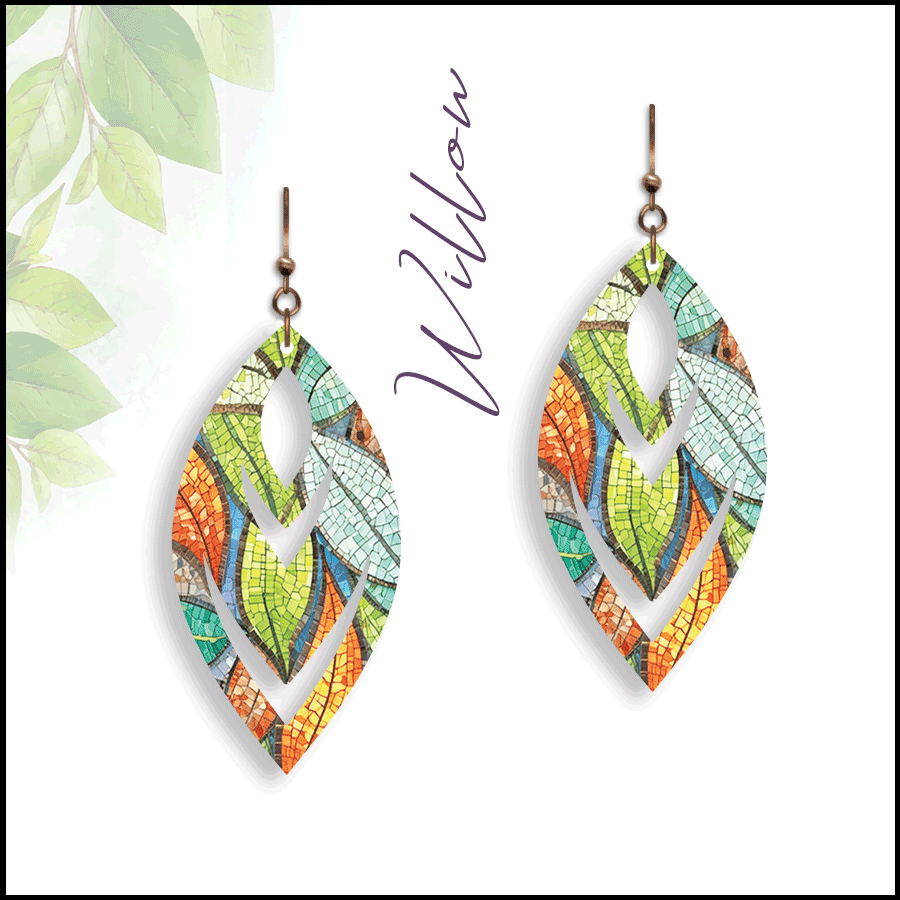 Our very stylish earrings are ultra-light weight & water resistant. Each earring is a handcrafted UV giclée printed on solid Mahogany wood. We use hypo-allergenic, antique copper ear wires. Wood dimensions: .75″ x 1.5″. Total dangle length: 2.25″ SKU: A66