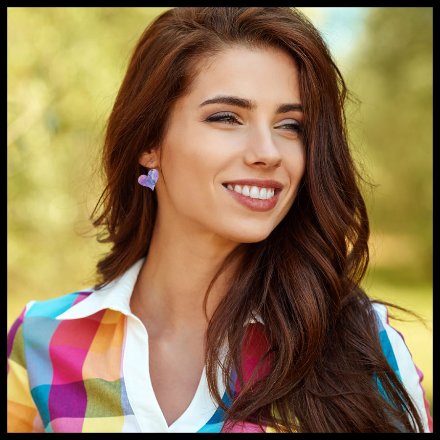 Our very stylish earrings are ultra-light weight & water resistant. Each earring is a handcrafted UV giclée printed both sides on stainless steel. We use hypoallergenic, antique copper ear wires. Sku: 43H