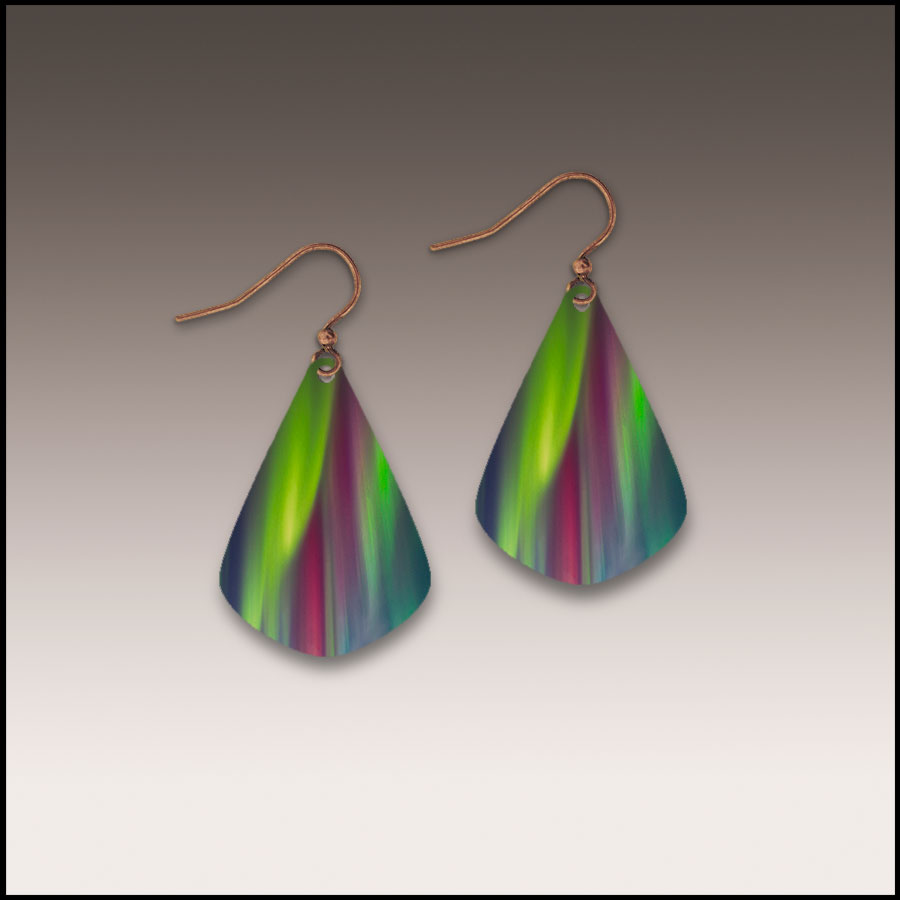Our very stylish earrings are ultra-light weight & water resistant. Each earring is a handcrafted UV giclée printed both sides on stainless steel. We use hypoallergenic, antique copper ear wires. Sku: NL1CE