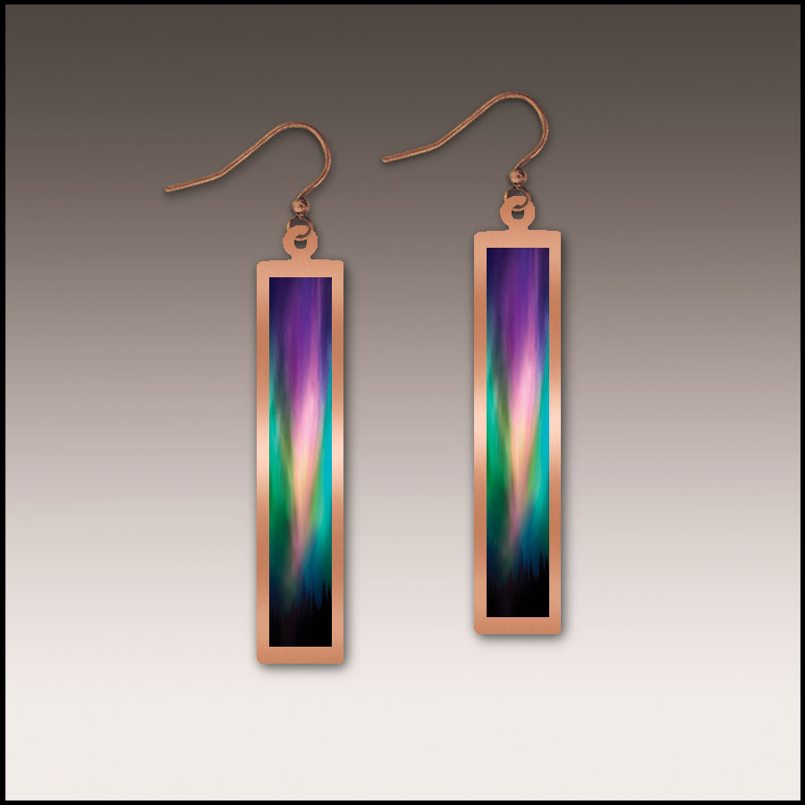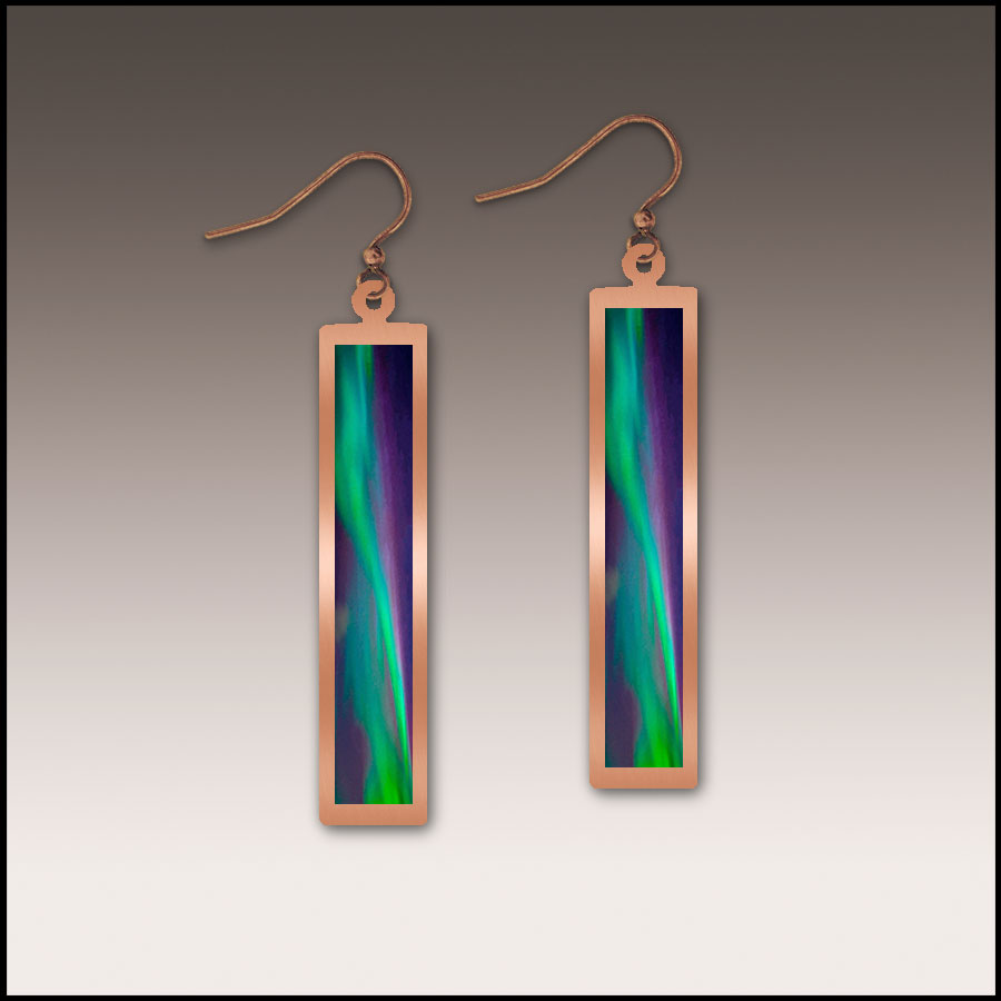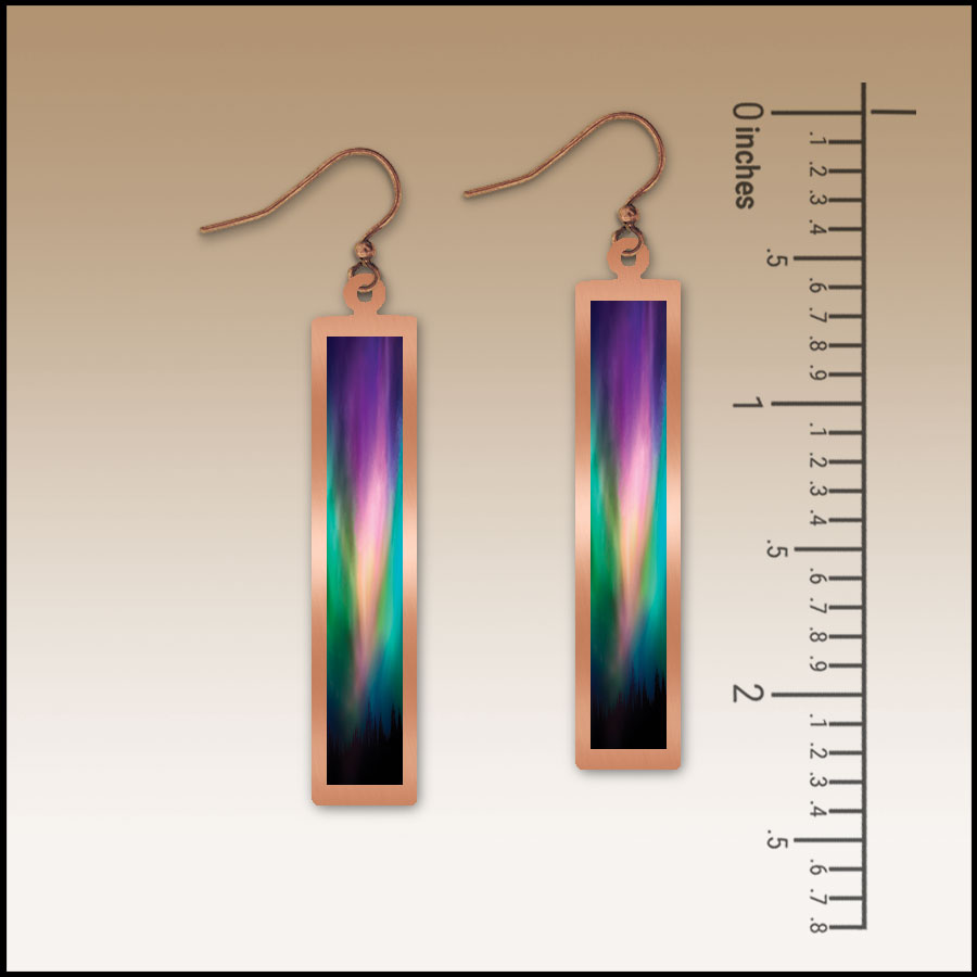 Our very stylish earrings are ultra-light weight & water resistant. Each earring is a handcrafted UV giclée printed both sides on stainless steel. We use hypoallergenic, antique copper ear wires. Sku: NL2SE