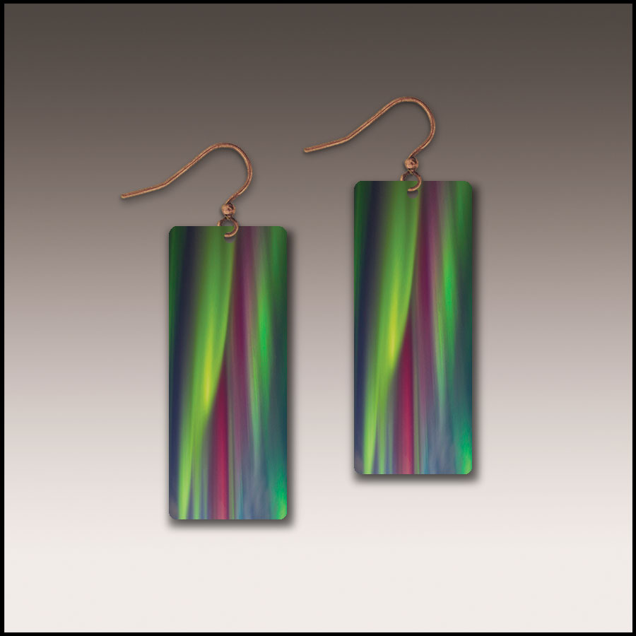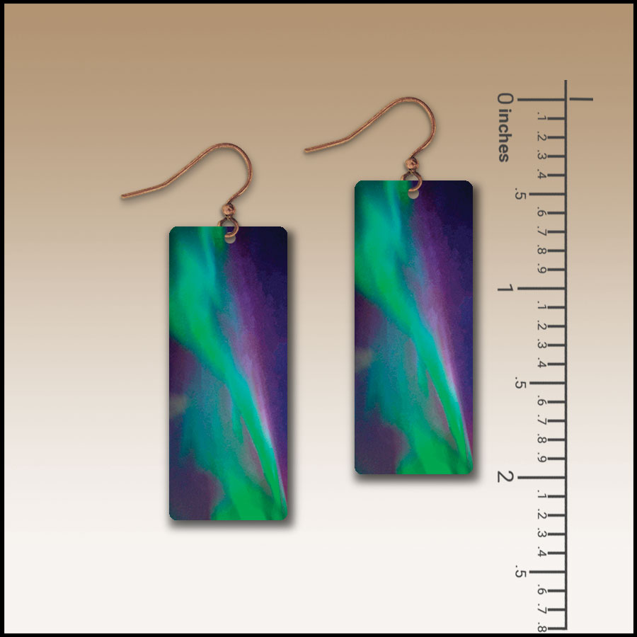 Our very stylish earrings are ultra-light weight & water resistant. Each earring is a handcrafted UV giclée printed both sides on stainless steel. We use hypoallergenic, antique copper ear wires. Sku: NL3CE