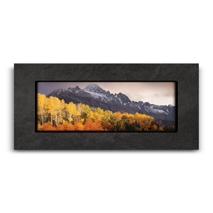 We print onto a metal plate with UV protection making it scratch & fade resistant then adhere it to natural slate tile. This elegant presentation is ready to hang on the wall or display on an easel. Easels sold separately. Because of the uniqueness of natural slate, some variation will occur from image pictured. 4×5 Mini Slates only display on easels.