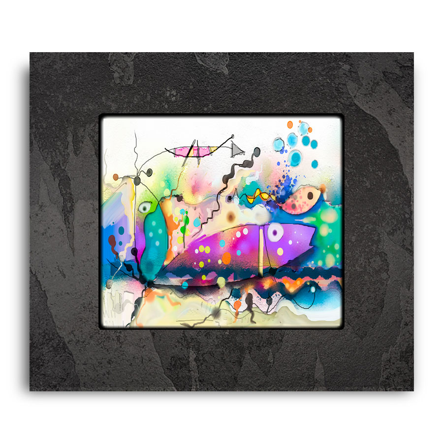 We print onto a metal plate with UV protection making it scratch & fade resistant then adhere it to natural slate tile. This elegant presentation is ready to hang on the wall or display on an easel. Easels sold separately. Because of the uniqueness of natural slate, some variation will occur from image pictured. 4×5 Mini Slates only display on easels.