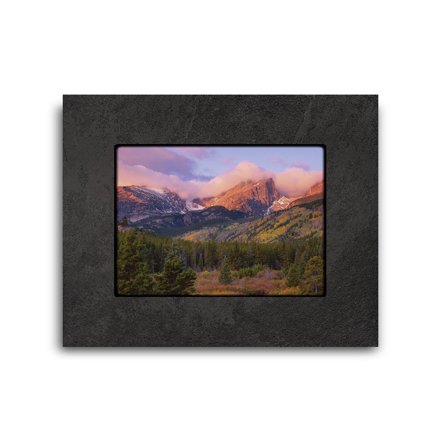 We print onto a metal plate with UV protection making it scratch & fade resistant then adhere it to natural slate tile. This elegant presentation is ready to hang on the wall or display on an easel. Easels sold separately. Because of the uniqueness of natural slate, some variation will occur from image pictured. 4×5 Mini Slates only display on easels.