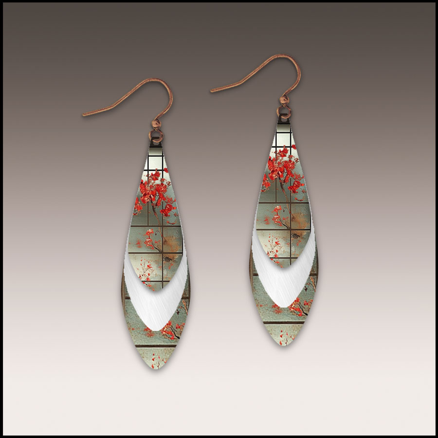 This is our newest design, ultra-light weight & water resistant. As with all our earrings, they are handcrafted in our studio in Fort Collins, Colorado. Each layer swings independently creating movement that is both intriguing and eye-catching. Dimensions: ½” x 1½”. SKU: 58ML
